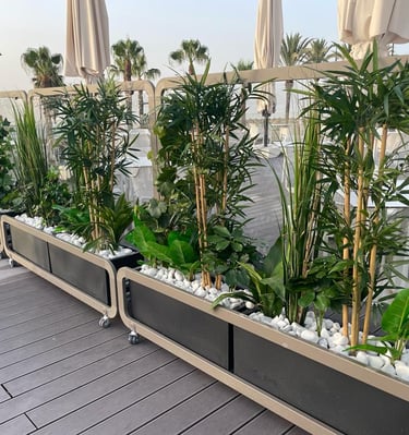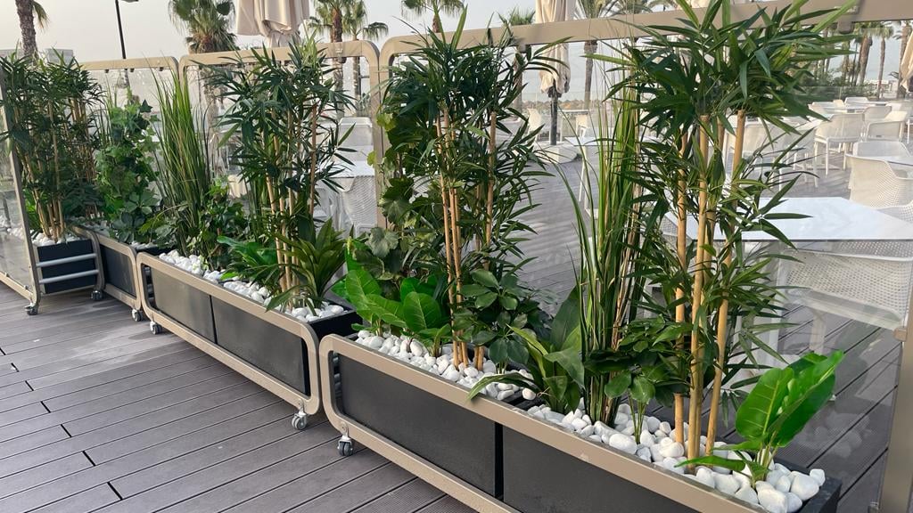 En decosur creamos espacios verdes que transforman tu entorno con plantas y jardines artificiales a medida. Todos nuestros trabajos son a medida y a gusto del cliente. La decoración artificial no necesita mantenimiento y es duradera.